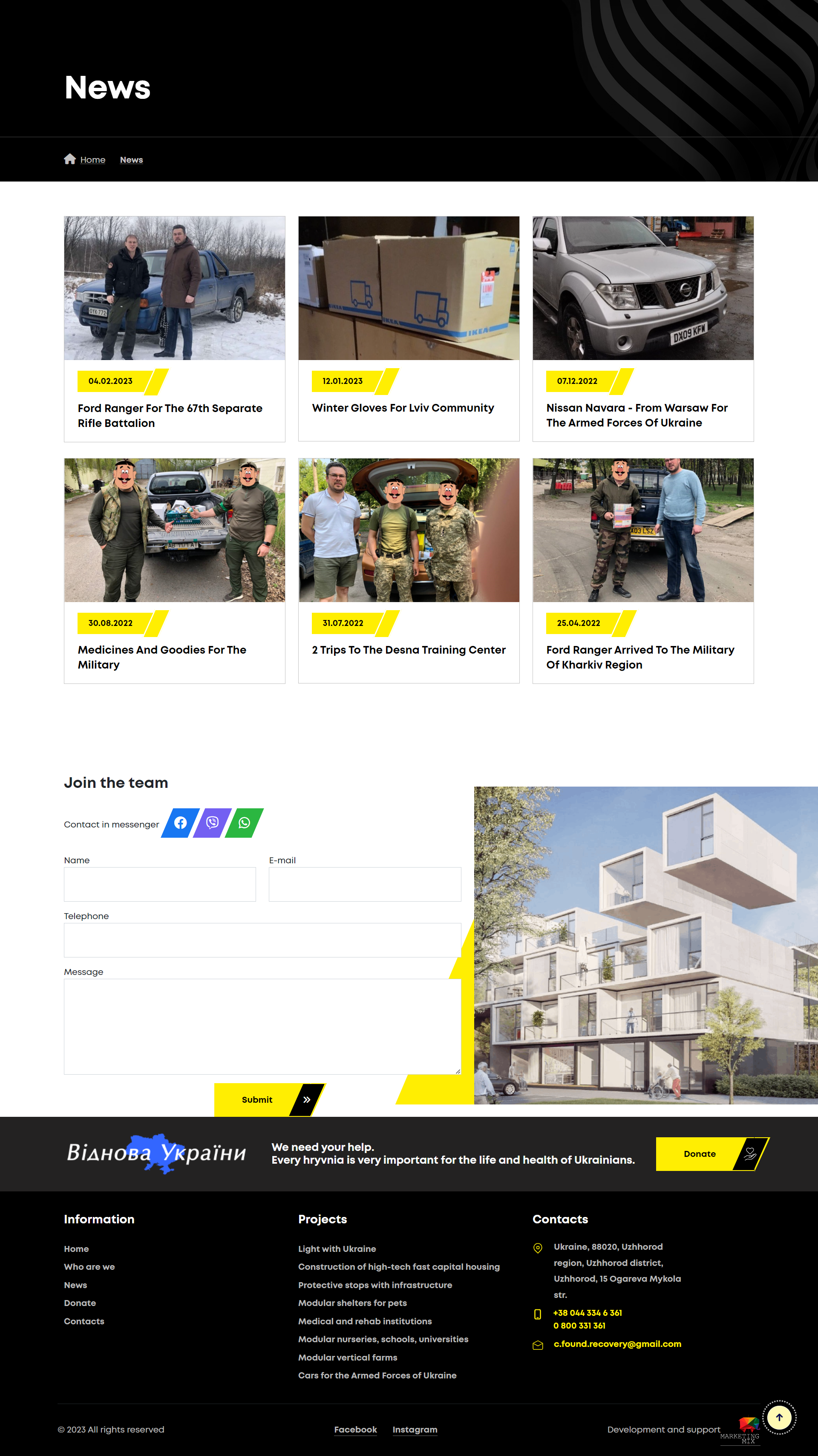 Charitable Foundation "Restoration of Ukraine" is a charitable organization, which is engaged in restoration and construction of social infrastructure of the regions of Ukraine.