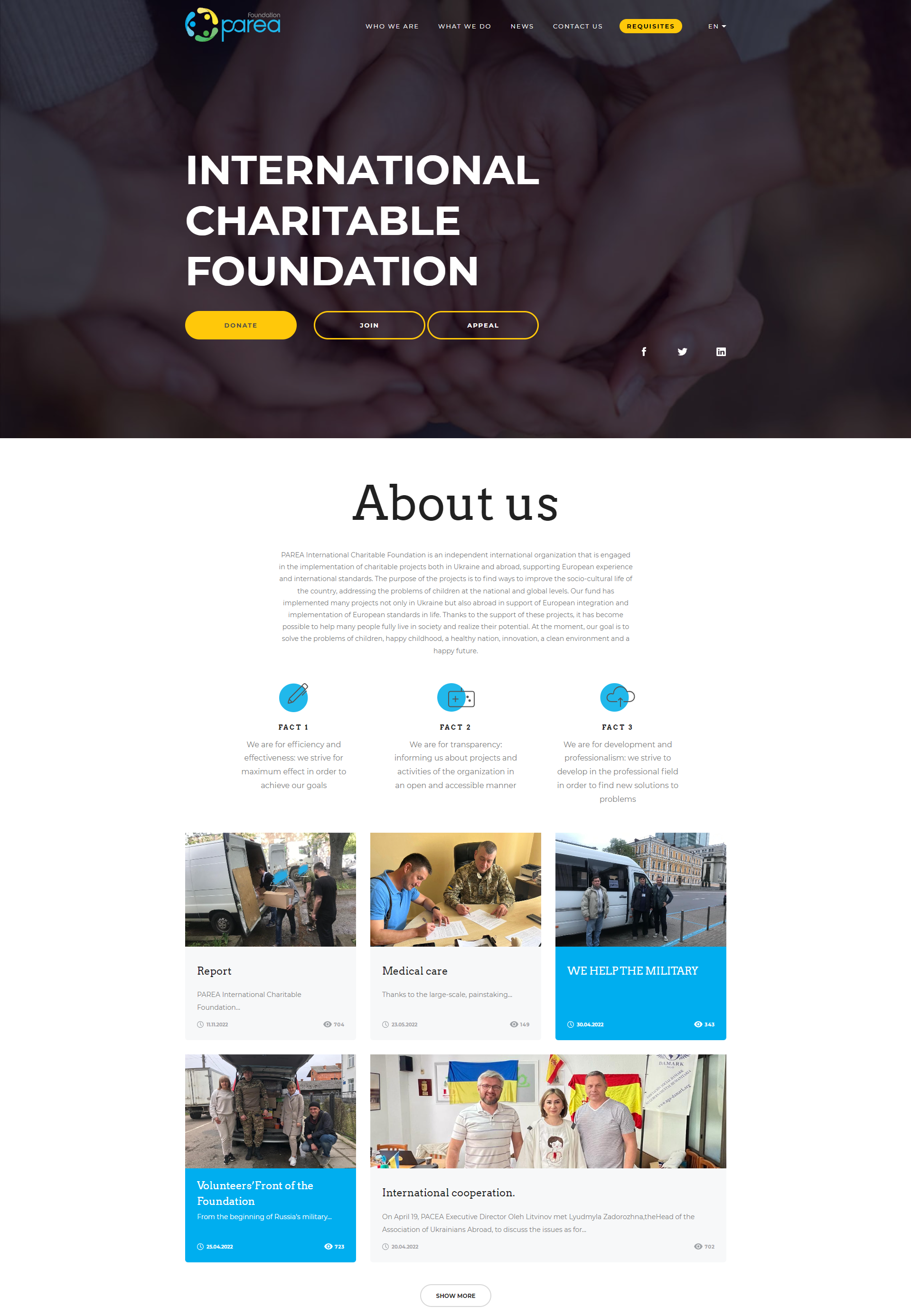 PAREA International Charitable Foundation ist eine internationale Nichtregierungsorganisation, die im Mai 2008 gegründet wurde. Die Paré International Charitable Foundation ist der Rechtsnachfolger der European Development Charitable Foundation, die bereits seit 10 Jahren erfolgreich in der Ukraine tätig ist.
